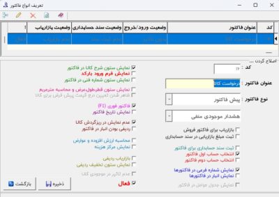 برای استفاده از فاکتور درخواست کالا A5 عمودی در نرمافزار حسابداری پارسیان، ابتدا فایل طراحی را پس از دانلود از حالت فشرده خارج کنید. سپس از منوی خرید و فروش وارد تنظیمات فاکتور شوید و در قسمت تعریف انواع فاکتور، ردیف جدیدی ایجاد نمایید.